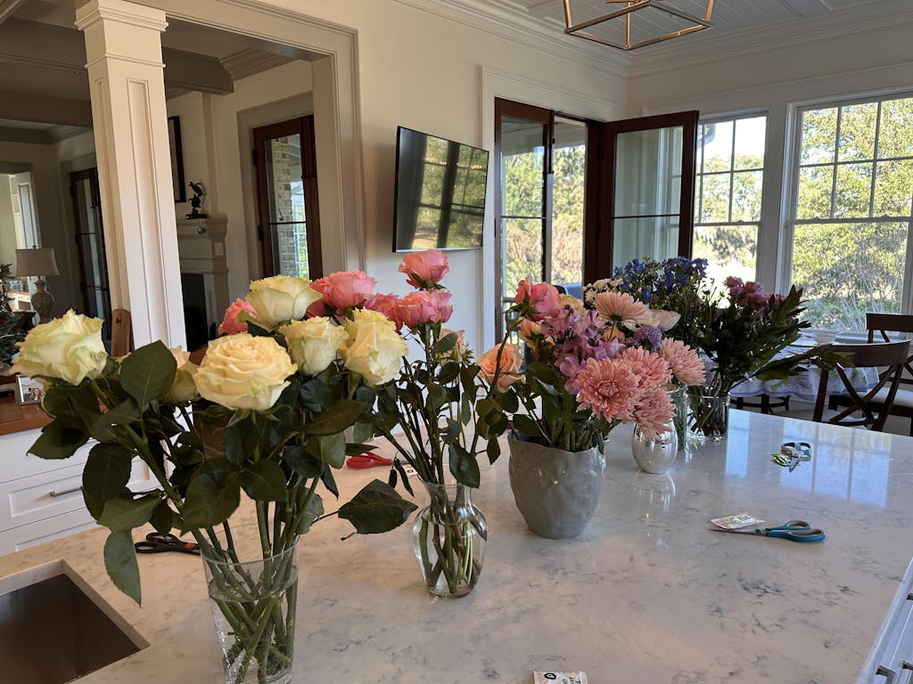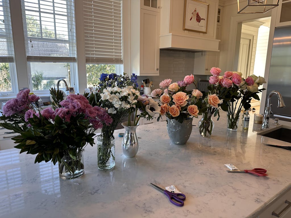 Place and Space: Place the freshly cut stems into the prepared water immediately, ensuring enough space in each container to allow the flowers to bloom properly.