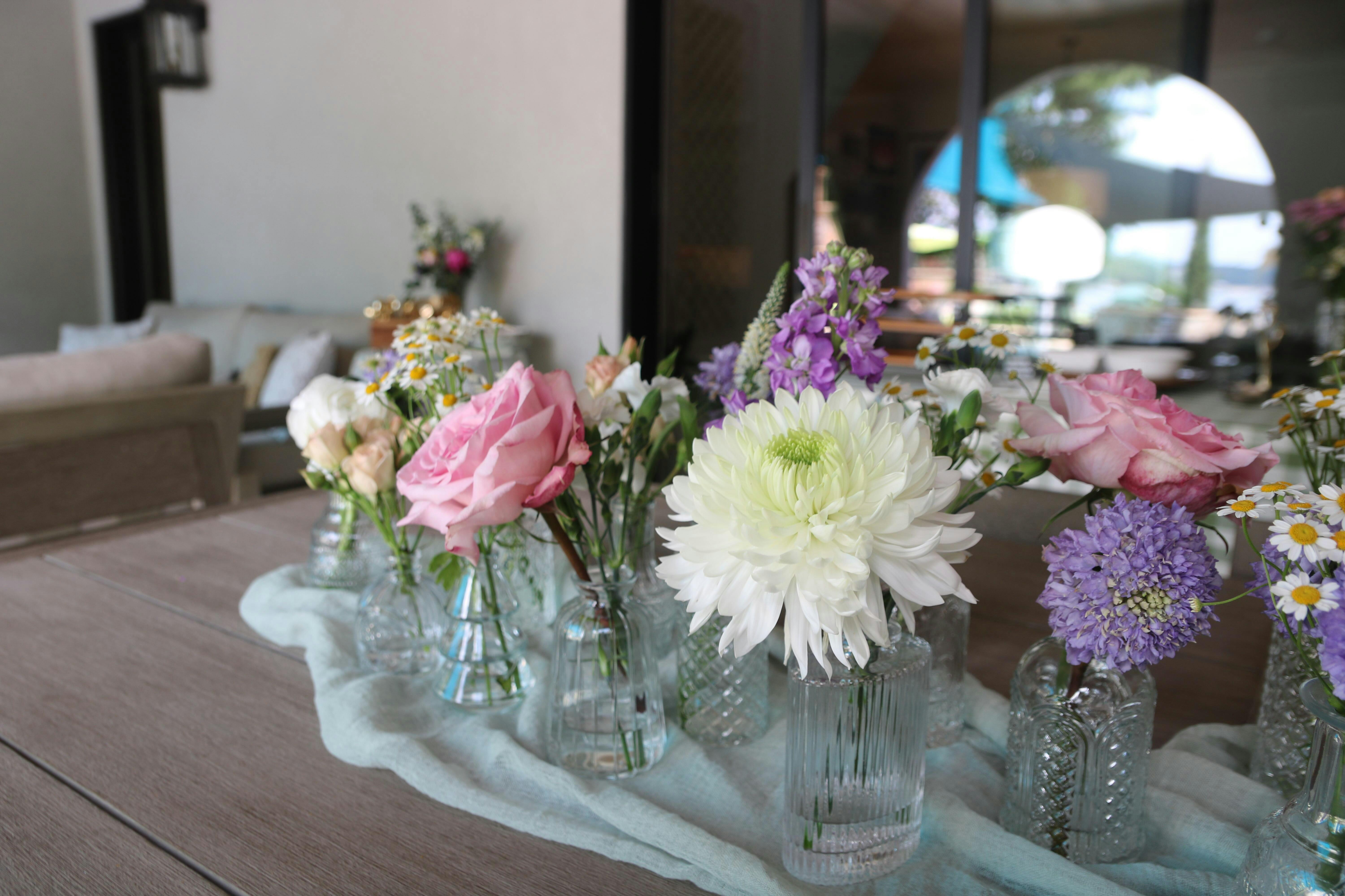 Place and Space: Place the freshly cut stems into the prepared water immediately, ensuring enough space in each container to allow the flowers to bloom properly.