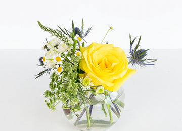 Available in Mini, Small, Medium, and Large sizes, our carefully curated preassembled flower centerpieces make setup easy. Simply trim the stems, place them in your favorite vase, and arrange them throughout your event space!
