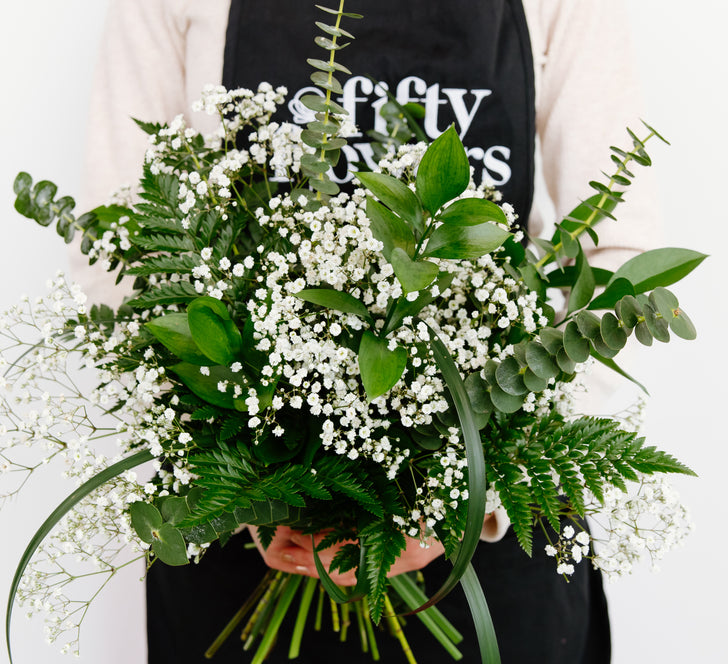 Our Classic Wedding Greenery Flower Collection is a classic for a reason, and you'll love it! This DIY flower kit includes Baby's Breath, Ruscus, Lily Grass, Eucalyptus, and Leather Leaf making it the ideal starting point for crafting any bouquet or arrangement. Crafted to meet your floral needs, this box is perfect for creating a beautiful greenery and baby's breath bouquet, garland, or as a versatile foundation for any floral design.