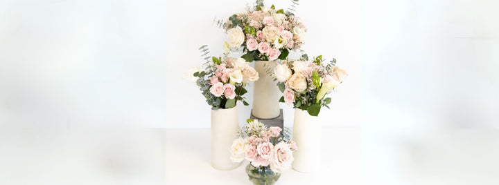 Available in Mini, Small, Medium, and Large sizes, our carefully curated preassembled flower centerpieces make setup easy. Simply trim the stems, place them in your favorite vase, and arrange them throughout your event space!