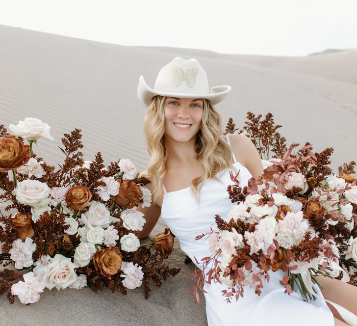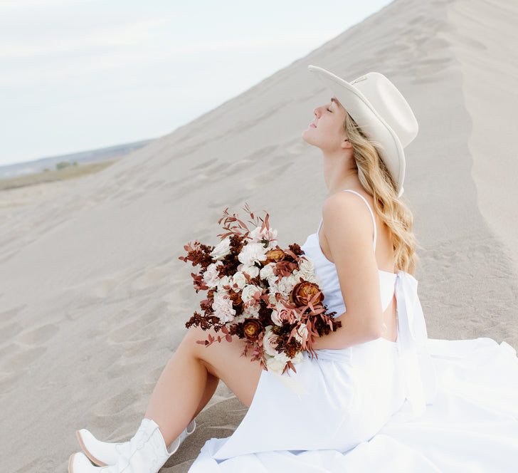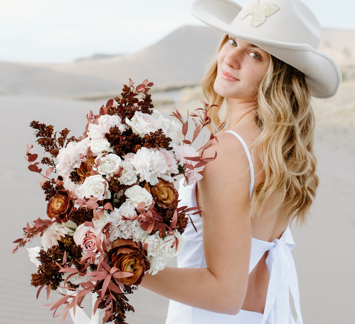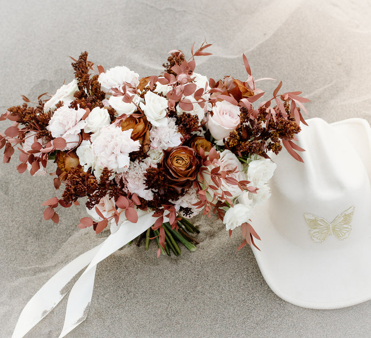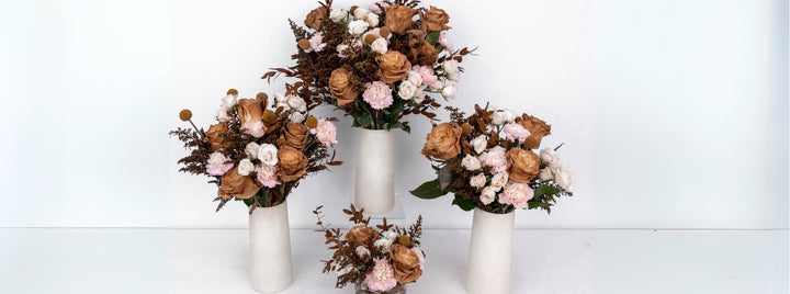 Earthy, romantic, and effortlessly cool—the Mocha Brown Flower Collection blends rich mocha tones with soft neutrals for a grounded yet elevated floral look. Featuring beige roses, cream spray roses, blush-tinted carnations, tinted greenery, and golden billy balls, this curated palette adds warmth and depth to modern desert weddings, rustic-chic gatherings, or any celebration with a neutral aesthetic.