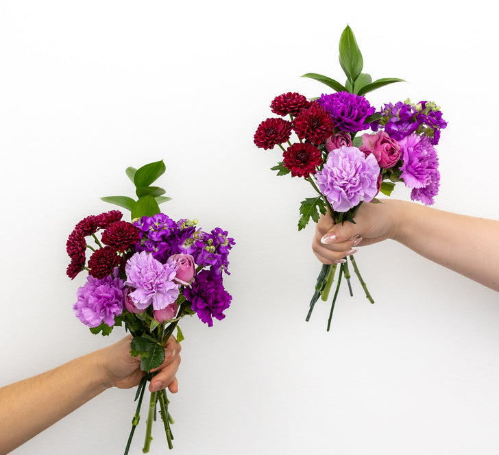 Available in Mini, Small, Medium, and Large sizes, our carefully curated preassembled flower centerpieces make setup easy. Simply trim the stems, place them in your favorite vase, and arrange them throughout your event space!