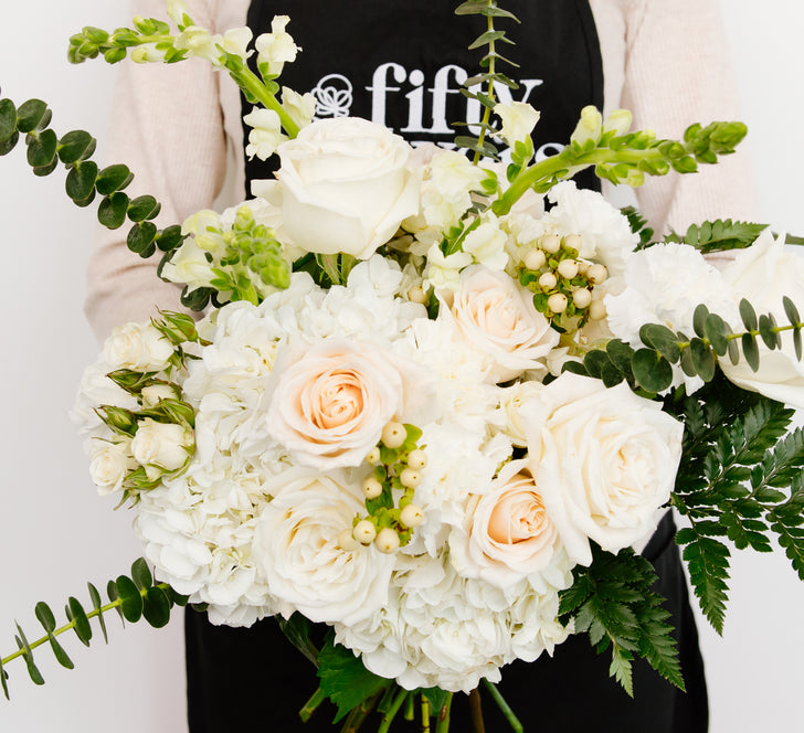 The Snow White Flower Collection exudes timeless elegance with a soft palette of creamy whites and delicate greens. Featuring white roses, hydrangeas, hypericum berries, and mums, this collection offers a clean, romantic aesthetic that feels both classic and fresh. Perfect for sophisticated gatherings or dreamy, minimalist arrangements.