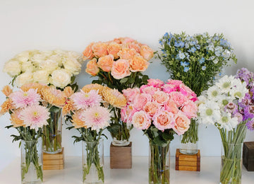 Available in Mini, Small, Medium, and Large. These carefully curated preassembled flower centerpieces are simple. Once they arrive all you have to do is cut them, place them in your preferred vase, and scatter along your event.