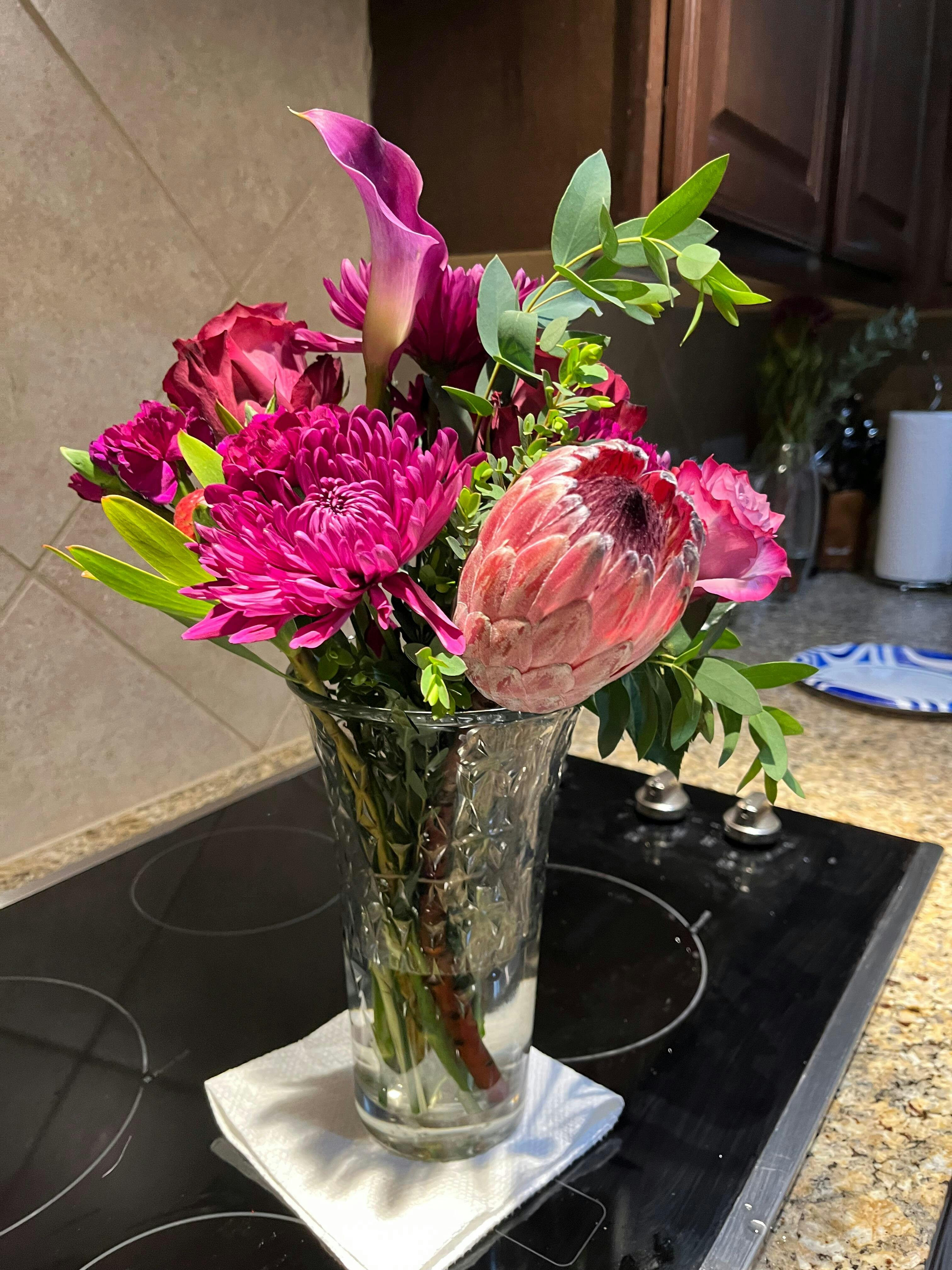 Hi Samantha, thank you for your review! We're so glad you enjoyed our On Cloud Wine DIY Flower Kit and had fun arranging the beautiful flowers yourself!