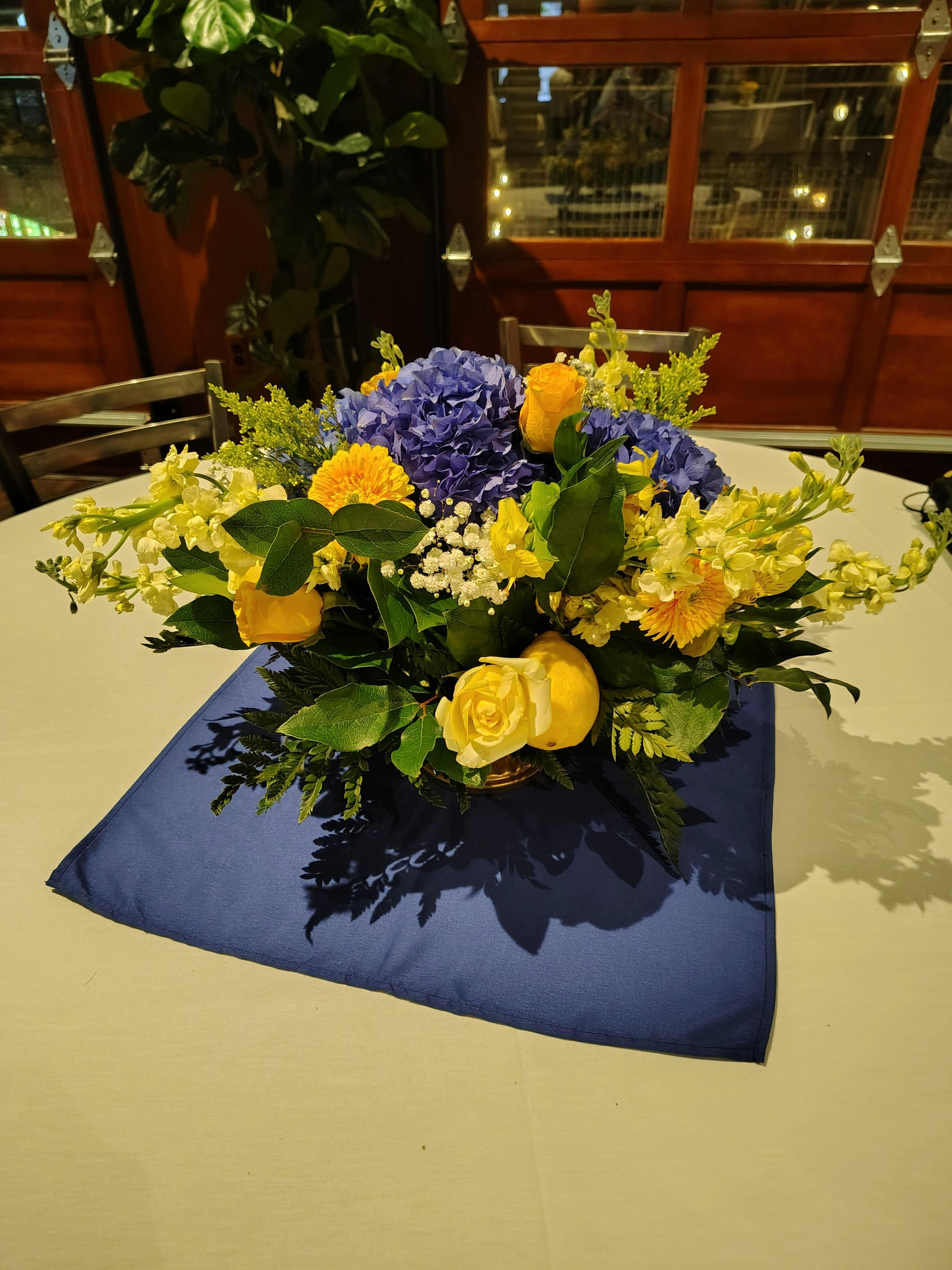 Thank you for taking the time to leave such a lovely review! We're happy to hear that our Yellow Gerrondo Gerbera Daisies were a stunning addition to your floral arrangement. We agree, the contrast with the deep blue hydrangeas and lemon sherbet roses must have been gorgeous. We hope to have the opportunity to provide you with more beautiful flowers in the future!