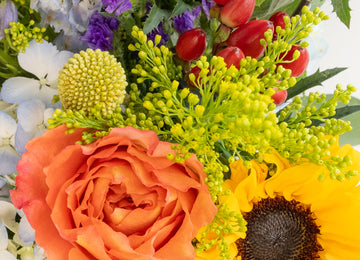 Available in Mini, Small, Medium, and Large sizes, our carefully curated preassembled flower centerpieces make setup easy. Simply trim the stems, place them in your favorite vase, and arrange them throughout your event space!