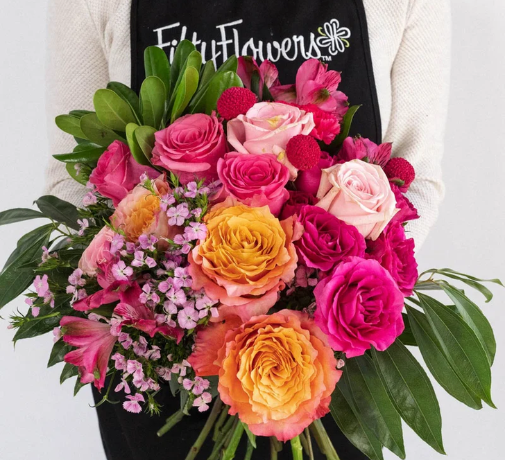 The Hot Popping Pink Flower Collection is a vibrant mix of hot pink roses, carnations, alstroemerias, and billy balls, paired with touches of golden and blush-toned blooms. This eye-catching assortment adds bold color and cheerful energy to any setting—whether you're planning a tropical wedding, a modern celebration, or simply love a pop of bright pink. Handcrafted for your most special occasions, these flowers are designed to stand out and make a lasting impression.