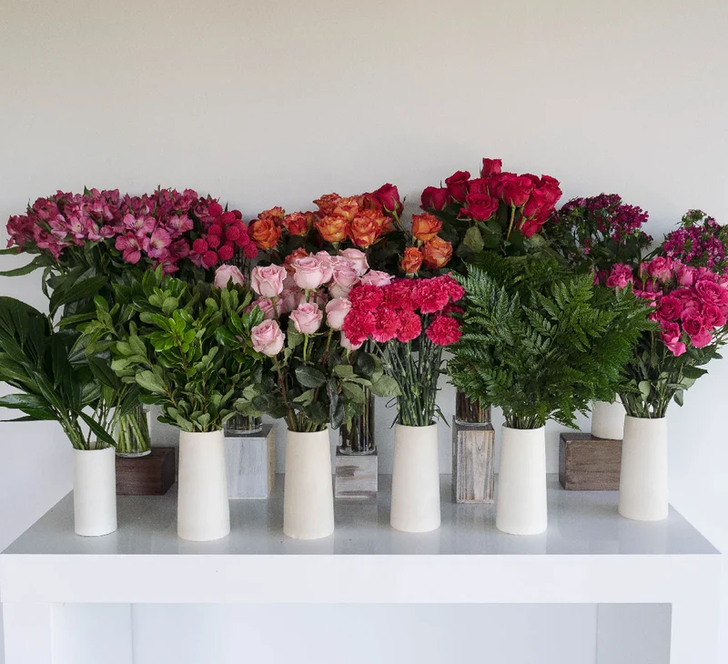 Available in Mini, Small, Medium, and Large sizes, our carefully curated preassembled flower centerpieces make setup easy. Simply trim the stems, place them in your favorite vase, and arrange them throughout your event space!