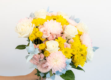 Available in Mini, Small, Medium, and Large sizes, our carefully curated preassembled flower centerpieces make setup easy. Simply trim the stems, place them in your favorite vase, and arrange them throughout your event space!