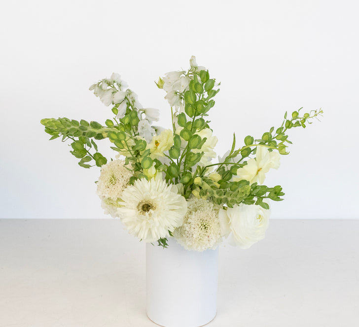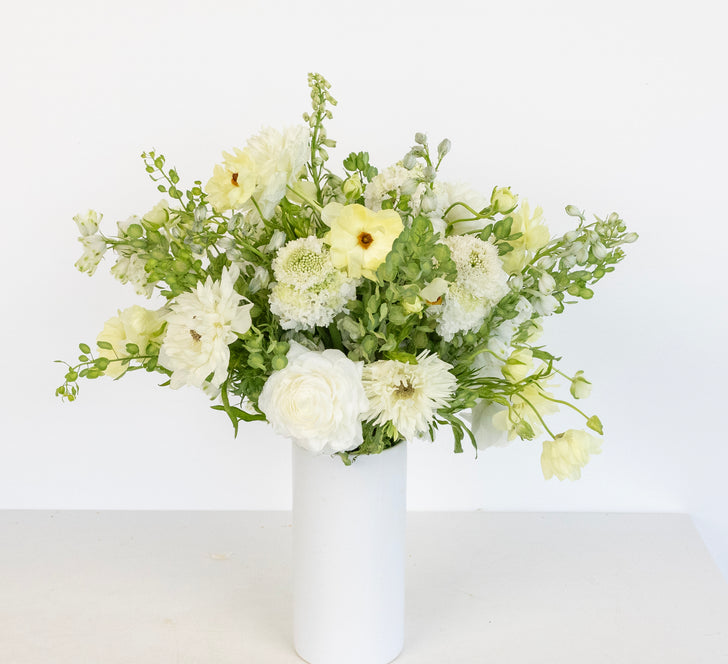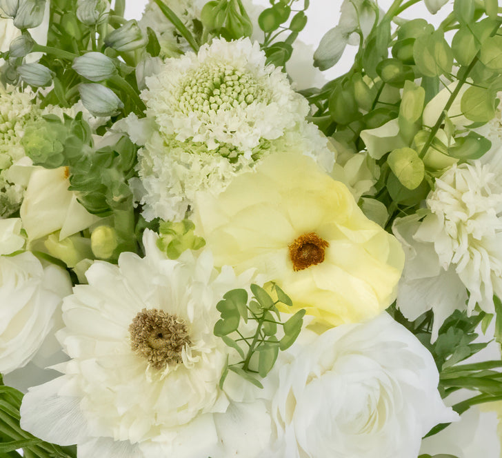 Set the tone with timeless beauty using our Wildflower Wishes Flower Collection. This line features elegant white blooms like anemones, ranunculus, scabiosa, butterfly ranunculus, snapdragons, delphinium, and airy pennycress greenery, offering a fresh-from-the-meadow feel. With its soft, neutral palette and gentle textures, these flowers will bring effortless grace to wedding tables, bridal brunches, or classic home decor moments.