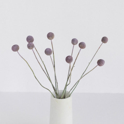 Add a glamerous touch to classic arrangements with Silver Tinted Craspedia Billy Balls. Craspedia are globe-shaped blooms with a unique scaly texture. The bloom is enhanced with floral spray paint to achieve a glamorous, dreamy silver hue, which makes it perfect for timeless winter arrangements. Pair with blooms like blush Italian cloony ranunculus, garden roses creamy white blush, paper white garden roses, and dusty miller greens.