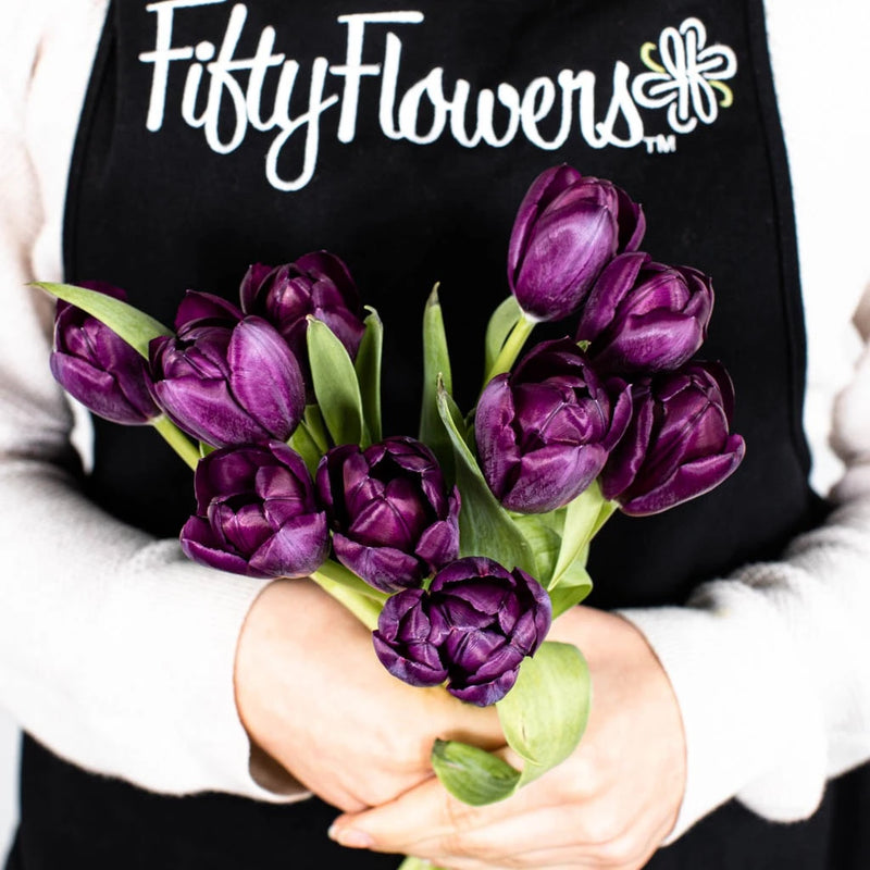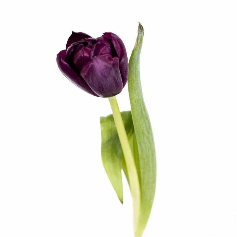 Add an elegant and regal touch to arrangements with Black Jack Tulip Flowers. These standard tulips have dainty, tapered heads with velvety petals; these tight petals gradually open to form a unique, cup-shaped bloom. They have a dark, royal purple hue, which is perfect for moody modern-inspired arrangements. Pair with blooms like pretty succulent flowers, amnesia lavender novelty roses, pink ice protea flowers, and purple bulk astrantia.