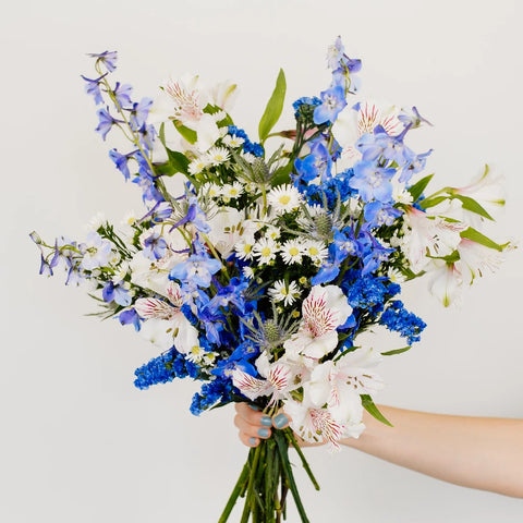 For a more hands-on approach to creating stunning floral designs, check out our Blue Magic DIY Flower Kit. Featuring the same beautiful flower recipe, this DIY Flower Kit provides all the floral ingredients you need to craft your own unique arrangements. Available in three pack sizes, it's perfect for occasions and events of any size.