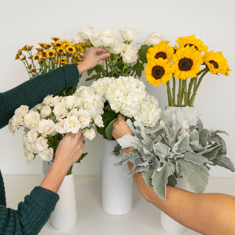 Our Flower Bar Kits turn any event into an interactive floral experience. Each kit includes a curated mix of focal, filler, line flowers, and greenery—delivered in bulk so guests can create and take home their own bouquets. Kits are available in three sizes to suit everything from small gatherings to large events. Download our Flower Bar How-To Guide for tips, setup ideas, and step-by-step guidance. Download our printable Flower Bar Sign to make setup even easier.
