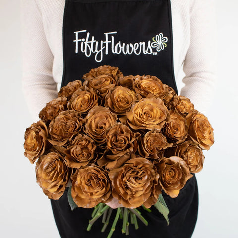 Tinted Flowers: Tinted flowers may release color into the water, which is perfectly normal. To keep the water clear and clean, be sure to change it regularly. Tinted water can also stain surfaces, so be cautious. The dye may transfer to skin or clothing, so we recommend wearing gloves while handling. For added protection, especially with clothing like a white wedding dress, wrap the stems to prevent dye from transferring.