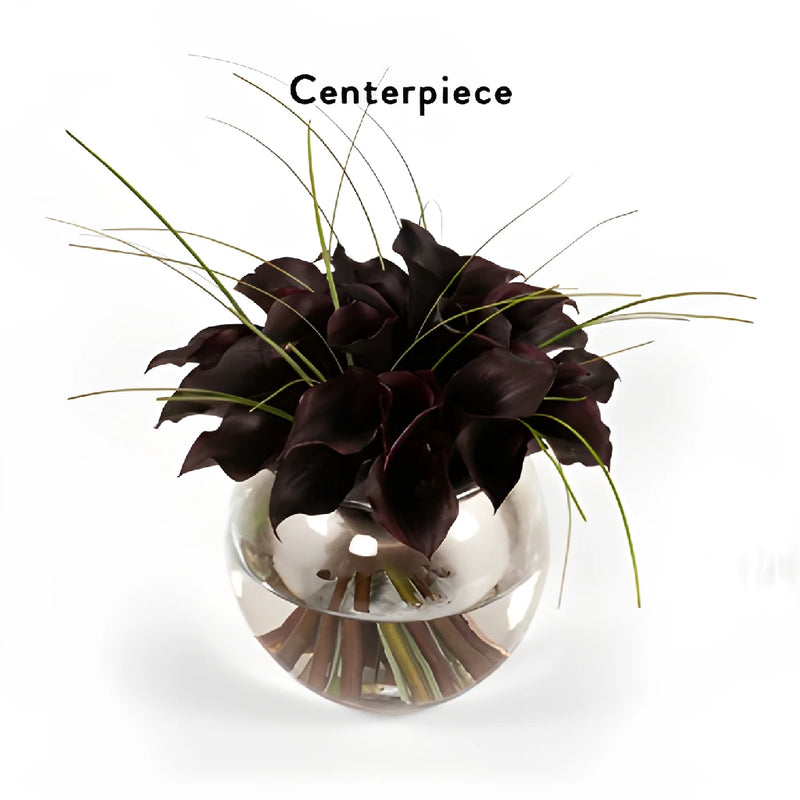 - Centerpieces feature: White or Deep Purple Calla Lilies and Lily Grass.