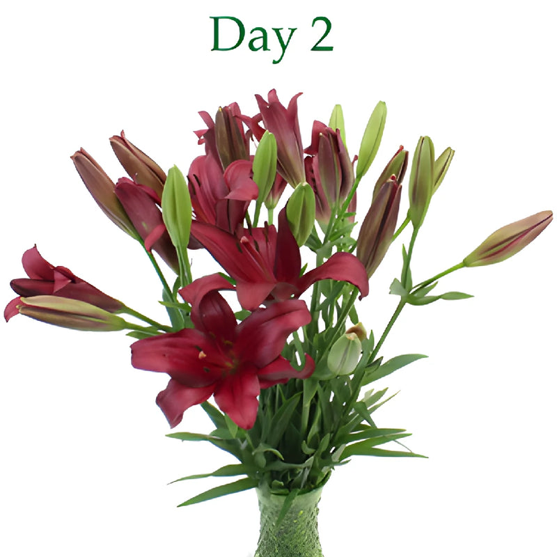 Lilies are sensitive to ethylene gas — store away from fruits and vegetables, especially bananas.