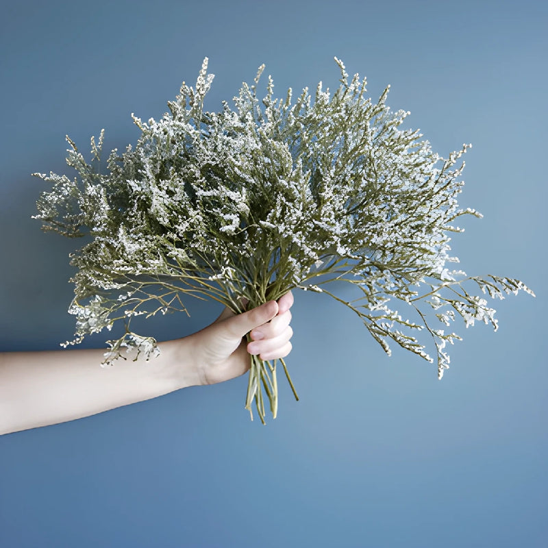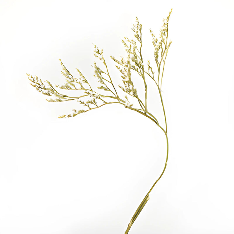 The dried version of a popular filler flower, Dried Limonium bring a rustic touch to any arrangement. Each stem features many clusters of tiny blooms. This white tissue paper-like flower would serve as a subtle backdrop for any wedding bouquet, table centerpiece or flower arrangement.