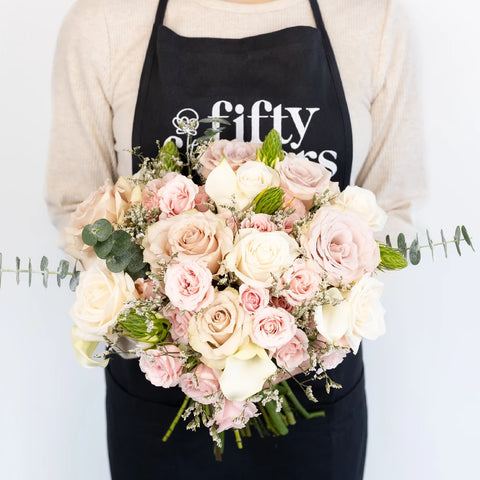 FiftyFlowers exclusively ships fresh flowers with the fastest priority overnight service. If your desired date is unavailable, contact customer care - chat, call, or text us. We are here to help! When adding products to your cart, the calendar will display how many days before your event we recommended delivery. Because every flower is different, selecting the proper delivery date can be tricky. That's why our team of human experts will personally review each order to ensure you have chosen the appropriate dates for flower perfection. Our 100% Satisfaction Guarantee includes this complimentary service.