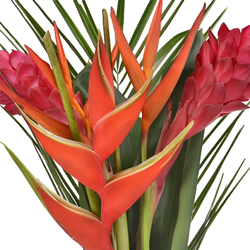 Create a sultry tropical atmosphere at your event with Havana Breeze Centerpieces. Farm choice tropical greenery and exotic ginger and heliconia make for an attractive bouquet. This arrangement can be used as a tall striking centerpiece or cut shorter for a fuller cocktail table arrangement.