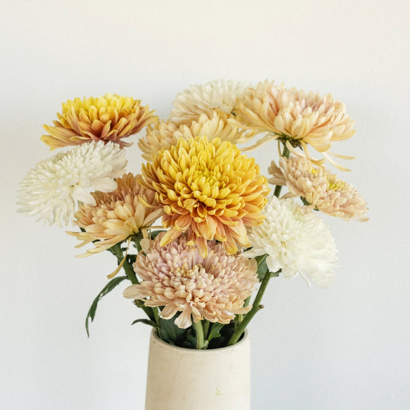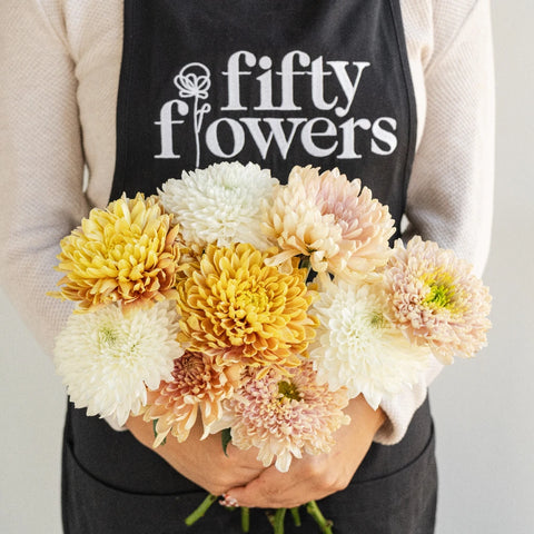 Bloom Netting: Mums and Spider Mums often arrive with netting around the blooms to protect their large, delicate heads. Leave the netting on during hydration and processing. Remove it only when you're ready to design or arrange.