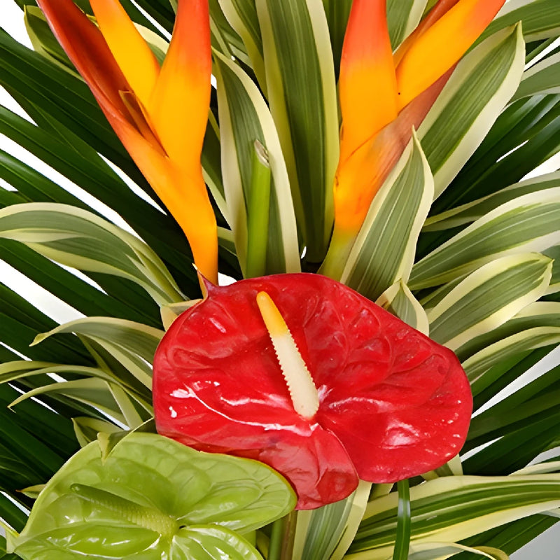 Find exotic and gorgeous Tropical Bouquets at FiftyFlowers. Inspired by lush tropical rainforests, Jungle Hideaway Tropical Centerpieces are perfect for your event. Several different varieties of tropical greenery and exotic flowers are paired together to create these stunning arrangements. Use these centerpieces as fun table decor at a tropical themed event, or as a beautiful bouquet at a beach wedding.