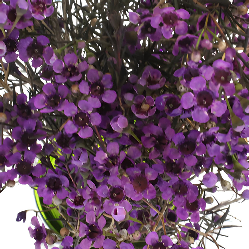 About the Majestic Purple Tinted Wax Flowers May to November Delivery