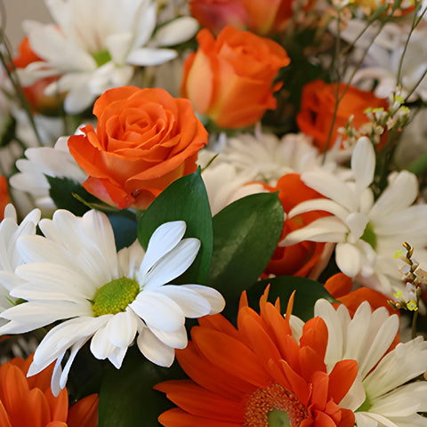 Bright and Bold? If that is what you are looking for then the Monochromatic Orange Combo Pack is just for you. This blend of Orange Alstroemeria, Gerbera Daisies, Tinted Orange Limonium, White Dasies, and White Snapdragons or Stock will give you everything you need to create eye catching, orange arrangements.