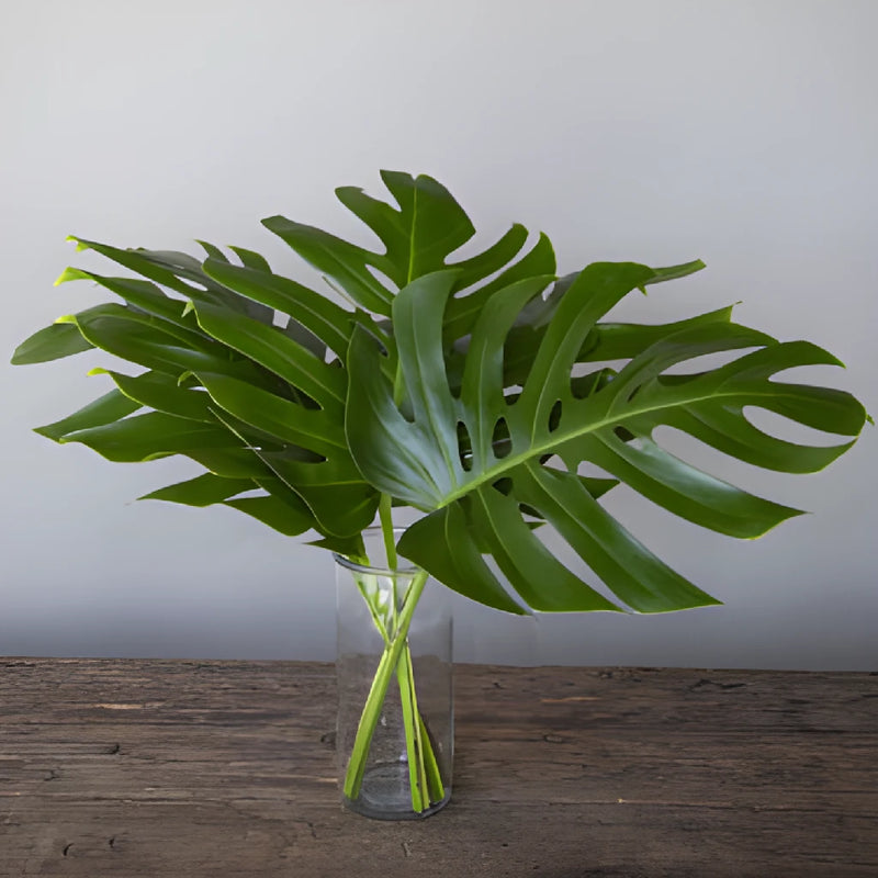 Monitor Water Levels: Greenery drinks heavily upon arrival, so check frequently to ensure all stems are always submerged. If the water drops below the stems, refill immediately and recut them before placing them back in the container.
