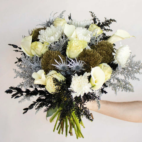 Tinted Flowers: If your bouquet contains tinted flowers, they may release color into the water, which is perfectly normal. To keep the water clear and clean, be sure to change it regularly. Tinted water can also stain surfaces, so be cautious. The dye may transfer to skin or clothing, so we recommend wearing gloves while handling. For added protection, especially with clothing like a white wedding dress, wrap the stems to prevent dye from transferring.