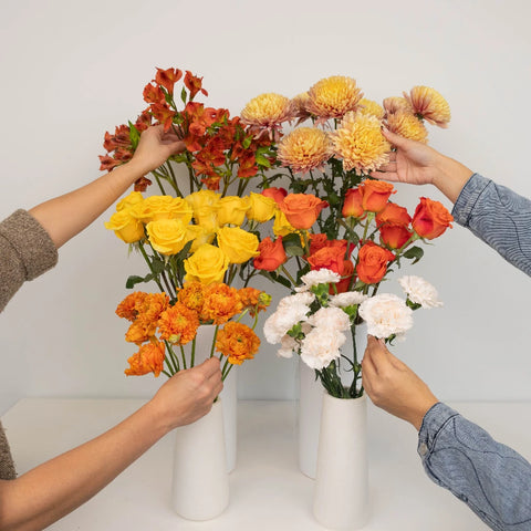 Looking for ready-made centerpieces with the same recipe? Our Orange Harvest Flower Centerpiece arrives beautifully pre-arranged, making setup effortless and stress-free. Just trim the stems, place them in your favorite vases, and enjoy the stunning results!