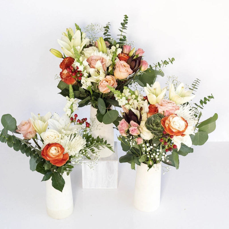 For a more hands-on approach to creating stunning floral designs, check out our Peach Cobbler Wedding DIY Flower Kit. Featuring the same beautiful flower recipe, this DIY Flower Kit provides all the floral ingredients you need to craft your own unique arrangements. Available in three pack sizes, it's perfect for occasions and events of any size.
