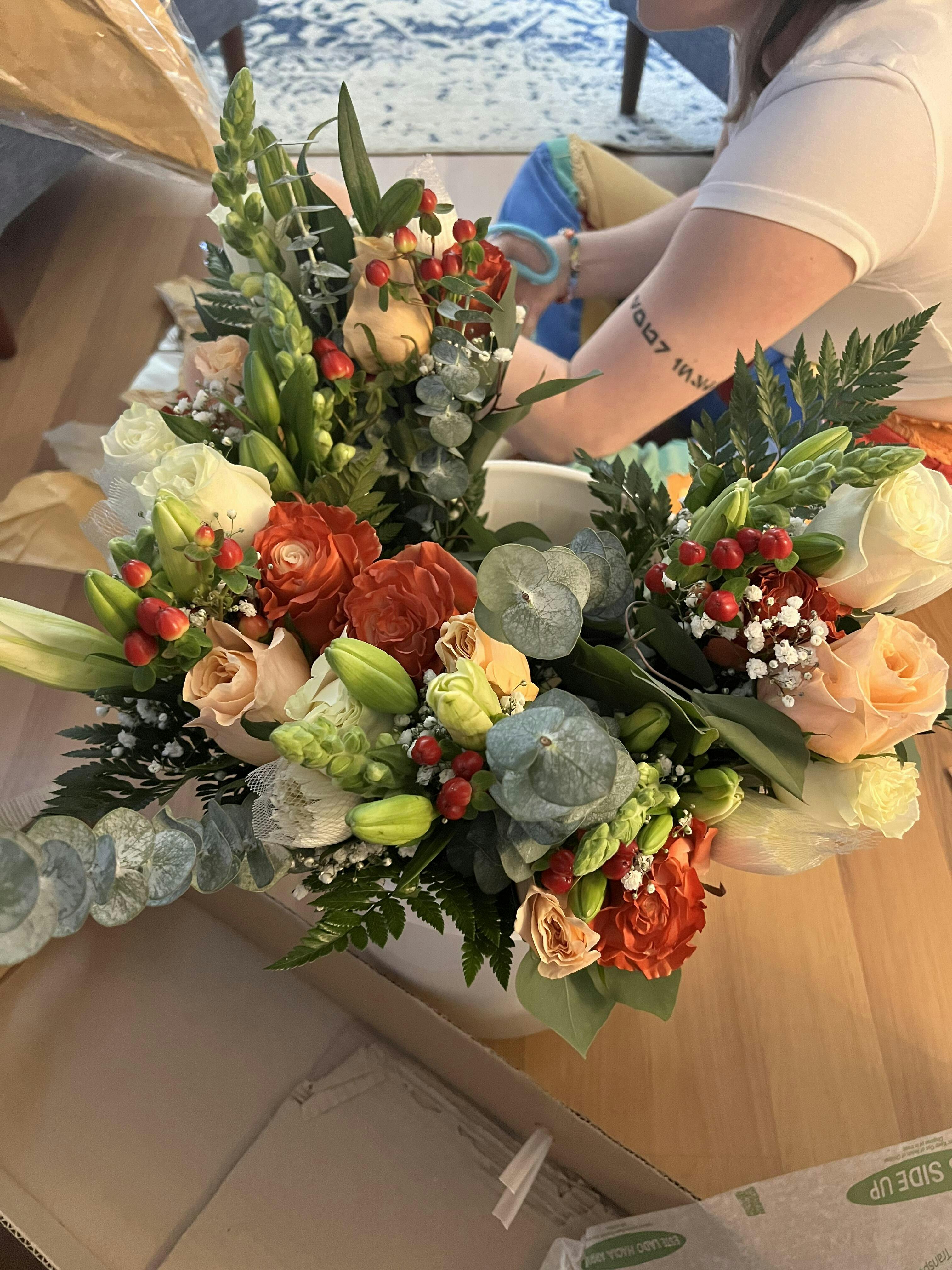 Our centerpieces arrive beautifully pre-arranged, making setup effortless and stress-free. All you need to do is trim the stems, place them in your favorite vases, and enjoy the stunning results. That's it!