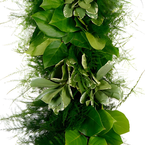 Our garlands are designed to be one-sided, with the wire-facing side intended to rest on a table or surface.