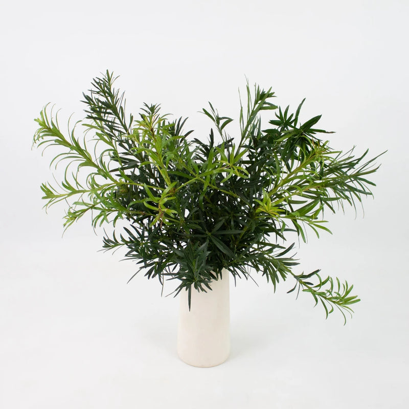 Monitor Water Levels: Greenery drinks heavily upon arrival, so check frequently to ensure all stems are always submerged. If the water drops below the stems, refill immediately and recut them before placing them back in the container.