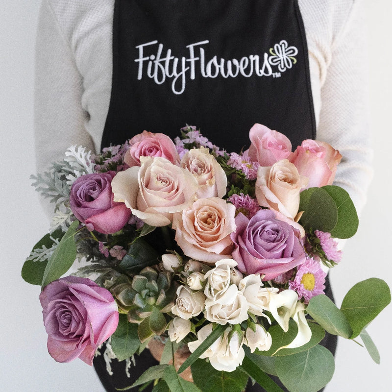 FiftyFlowers is proud to take full responsibility for the quality of your properly cared-for flower shipment. Please read our Full Guarantee for more information.