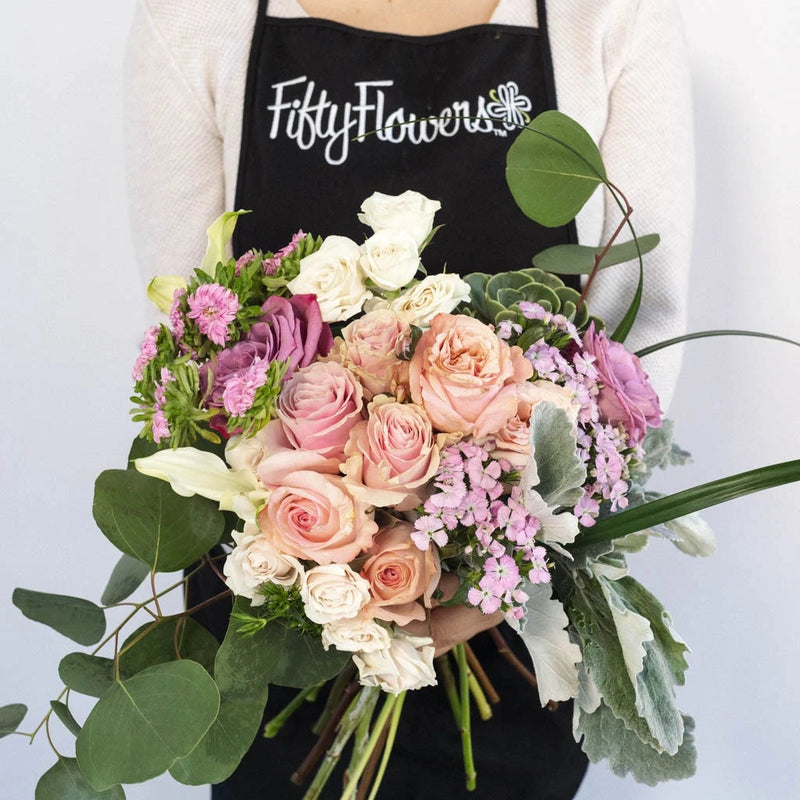 FiftyFlowers exclusively ships fresh flowers with the fastest priority overnight service. If your desired date is unavailable, contact customer care - chat, call, or text us. We are here to help! When adding products to your cart, the calendar will display how many days before your event we recommended delivery. Because every flower is different, selecting the proper delivery date can be tricky. That's why our team of human experts will personally review each order to ensure you have chosen the appropriate dates for flower perfection. Our 100% Satisfaction Guarantee includes this complimentary service.