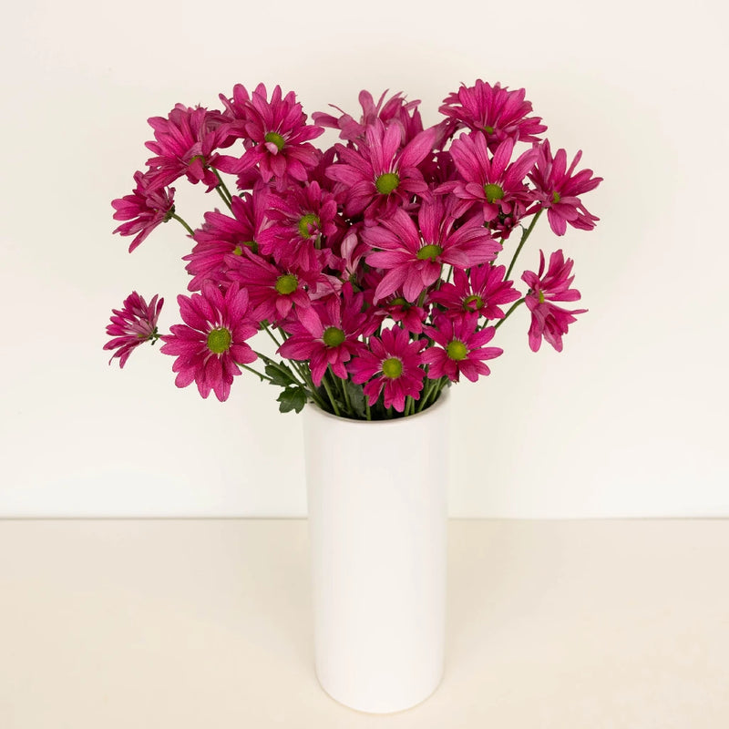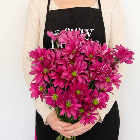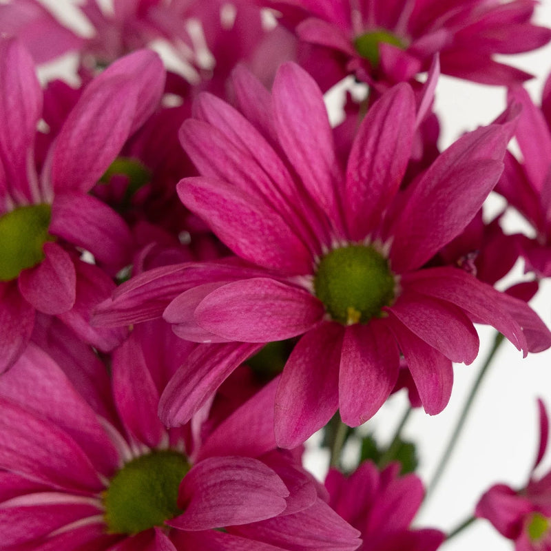 Purpleberry Daisy Flower is a popular spray flower in the Pompom family. Each stem has an average of 3-5 flowers, and each flower head consists of medium length purple pink petals with a llime yellow center. This daisy would make a charming addition to any table centerpiece, wedding bouquet or flower arrangement. Daisy Poms ship fresh directly from our Ecuadorian or Colombian farms to your doorstep!
