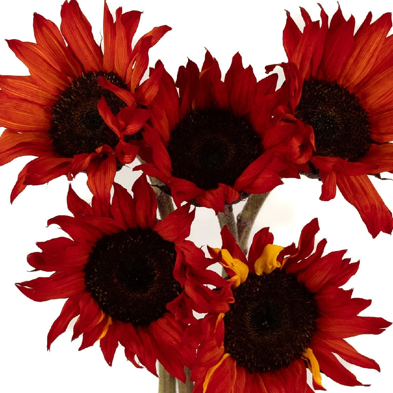 Our Red Tinted Sunflowers are shipped fresh and directly from our pristine Ecuadorian farms to your doorstep, ensuring their peak freshness and quality for your special occasions. When you order online, you not only enjoy the splendor of these remarkable blooms but also benefit from wholesale prices, allowing you to elevate your event without breaking the bank. And, as an added bonus, we offer complimentary shipping to make your experience even more delightful.