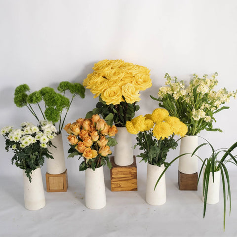 Tinted Flowers: If your kit contains tinted flowers, they may release color into the water, which is perfectly normal. To keep the water clear and clean, be sure to change it regularly. Tinted water can also stain surfaces, so be cautious. The dye may transfer to skin or clothing, so we recommend wearing gloves while handling. For added protection, especially with clothing like a white wedding dress, wrap the stems to prevent dye from transferring.