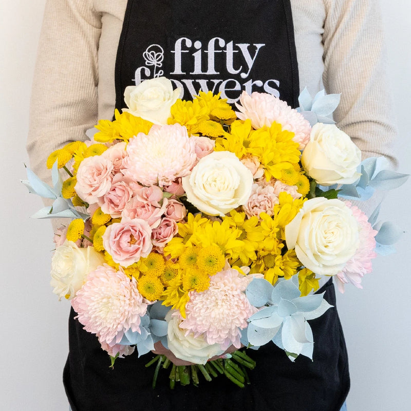FiftyFlowers is proud to take full responsibility for the quality of your properly cared-for flower shipment. Please read our Full Guarantee for more information.