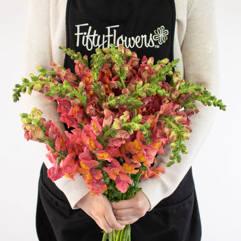 If your snapdragons arrived curled or bent, this is normal. Snapdragons are phototropic, meaning they follow the light. During hydration, place a lamp directly above the flowers (at least 6 feet away) to encourage stems to straighten.