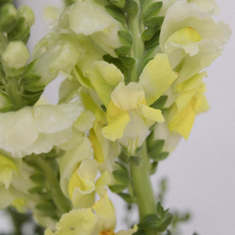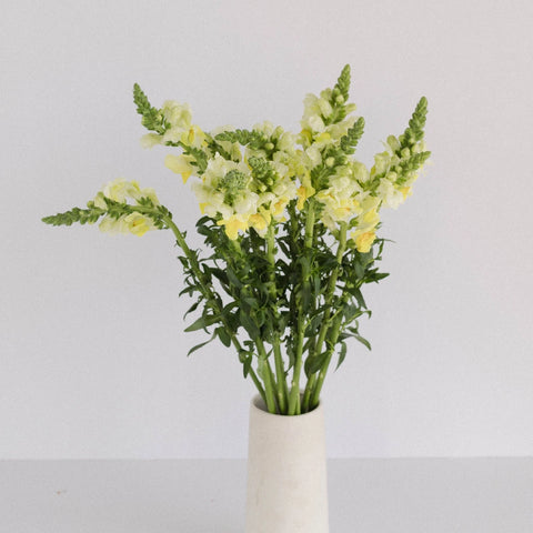 A fresh yellow flower, Snapdragon is known for its wispy jaw-like upper and lower petals. A single stem averages 10-15 of these unique blooms, which are grouped closely together giving the impression of a single lengthy flower. This yellow flower would heighten any wedding bouquet, table centerpiece or flower arrangement. Snapdragons require special care upon arrival. Please see Flower Care section below.