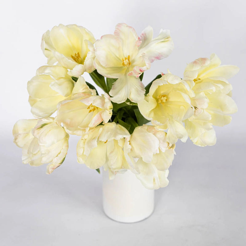 Tulips are phototropic — they naturally bend and follow the light. For straighter stems, place the flowers in a well-lit area with light directly overhead.