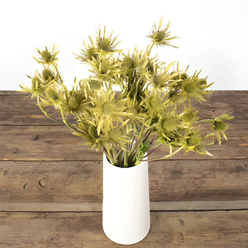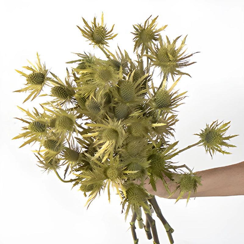 Note: Thistle may have a naturally crisp, papery texture, even at their freshest. Their petals aren’t soft and velvety like roses or ranunculus — instead, they feel a bit dry to the touch. That unique texture is one of the reasons they hold up so well in arrangements and stay beautiful for so long. They’re prized for their resilience and ability to retain their color and form as they air-dry — and they make wonderful dried flowers if you decide to preserve them later.