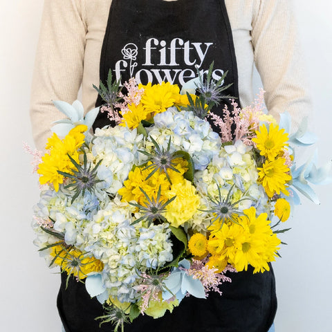 For a more hands-on approach to creating stunning floral designs, check out our Yellow Pastel Pop DIY Flower Kit. Featuring the same beautiful flower recipe, this DIY Flower Kit provides all the floral ingredients you need to craft your own unique arrangements. Available in three pack sizes, it's perfect for occasions and events of any size.